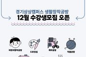 한민일보 서울포커스 김윤이 기자 | 경기문화재단 경기상상캠퍼스(대표이사 유정주)는 겨울 시즌 생활창작공방 프로그램 참여자를 오는 17일부터 모집한다. 생활창작공방은 경기상상캠퍼스 생생1990에 위치한 경기생활문화센터 교육 커뮤니티 공간으로, 도민이 일상 속에서 다양한 창작 활동을 경험할 수 있도록 재단공방, 어린이창작공방, 드로잉실, 취미공방, 직물공방, 커피공방, 사진촬영실까지 총 7개의 특화 공간을 운영하고 있다. 11월에는 총 11개의 프로그램이 구성돼 있으며, 주요 프로그램으로는 △Set in wool(울조끼와 가방 만들기), △오롯이 나에게 집중하는 시간: 4주 터프팅 힐링 프로젝트, △내 생애 첫 그림- 알기 쉬운 민화'일월오봉도', △그림책 마음 놀이터 등이 있다. 12월에는 △오일파스텔로 만드는 2026년 달력 △우리들의 예술놀이터, △복을 담는 라탄 복조리 만들기, △복을 쓸어 담는 모시 빗자루 만들기, △커피의 감별과 추출 방법: 커핑까지 총 5개의 프로그램이 운영될 예정이며, 수강 신청은 11월 14일부터 각 프로그램 시작 4일 전까지 경기상상캠퍼스 누리집을 통해 가능하다. 경기