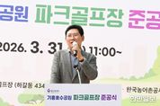 한민일보 서울포커스 김성윤 기자 | 용인특례시는 31일 기흥호수 수변산책로에 14홀 규모의 파크골프장 준공식을 개최했다. 기흥구 하갈동 434-4번지 일원 하갈2교 하부 약 1만 4000㎡로 조성한 파크골프장은 잔디가 활착하는 5월 중 정식 개장할 예정이다. 시는 향후 공간 확보를 통해 4홀을 늘려 18홀로 조성할 예정이다. 기흥호수 파크골프장은 지역주민의 여가와 쉴 공간을 제공하고, 파크골프 활동으로 세대간 소통과 건강 증진에도 큰 역할을 할 수 있을 것으로 기대된다. 준공식에는 이상일 용인특례시장을 비롯해 지역 주민과 파크골프 동호인들이 참석했으며, 행사장에 마련된 좌석이 부족할 정도로 높은 많은 관심을 받았다. 이 자리에서 지역의 파크골프 동호인들은 파크골프장 마련에 적극적으로 노력한 이상일 시장에게 감사의 뜻을 전했다. 이상일 시장은 기념사를 통해 “파크골프를 사랑하는 지역주민과 동호인들이 간절하게 염원한 기흥호수 파크골프장 공사가 끝났고 5월부터 개장할 예정이다. 오랜 시간 기다려 주셔서 감사하다”며 “14홀 규모는 전국 최초이며, 시는 향후 추가 공간을 확보해 18홀까지 규모를 확대하기
