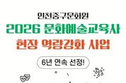 한민일보 서울포커스 김다남 기자 | 인천중구문화원(원장 박봉주)이 문화체육관광부와 인천광역시가 주최하고, 인천문화재단 인천문화예술교육지원센터와 한국문화예술교육진흥원이 주관하는 '2026 문화예술교육사 현장 역량강화 사업(인천)'에 6년 연속 선정되는 쾌거를 달성했다. ‘문화예술교육사 현장 역량강화 사업’은 문화예술교육사의 전문성 강화를 통해 지역의 문화예술교육 역량을 높이고, 주민들을 위한 우수한 문화예술교육 프로그램 개발과 운영을 지원하는 사업이다. 인천중구문화원은 지난 5년간의 성공적인 사업 운영 성과를 인정받아 올해도 본 사업에 연속 선정되며, 지역 문화예술교육의 거점으로서 입지를 공고히 했다. 특히, 오는 7월 예정된 인천시 행정체제 개편에 따라 ‘인천영종구문화원’으로의 새로운 출발을 앞두고 있어 그 의미가 더욱 남다르다. 올 하반기부터 인천중구문화원은 ‘영종구’로 거점을 이전하여 지역적 특성을 반영한 새롭고 다채로운 문화예술교육 프로그램을 선보일 계획이며, 이에 발맞춰 영종구에서 새롭게 호흡을 맞추며 프로그램을 기획·운영할 역량 있는 신규 문화예술교육사 채용 진행중에 있다. 인