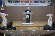 한민일보 서울포커스 최성훈 기자 | 서산소방서는 7일 소방서 대회의실 및 차고에서 ‘제63주년 소방의 날’ 기념행사를 개최했다고 밝혔다. ‘소방의 날’은 매년 11월 9일로 지정된 법정 기념일로, 화재 예방과 안전의식을 높이고 국민의 생명과 재산을 보호하기 위한 취지로 제정됐다. 이날 행사에는 소방공무원, 의용소방대원, 소방행정발전위원 등 100여명이 참석해 자리를 빛냈다. 1부 행사에서는 기념사와 유공자 표창이 진행됐고 장관상·청장상·도지사상·서장상 등 총41명의 소방공무원 및 민간 유공자가 표창을 받았다. 이어진 2부에서는 케이크 절단식과 오찬을 통해 소방 가족 간의 화합과 소통의 시간을 가졌다. 최장일 서산소방서장은 “오늘의 소방이 있기까지 헌신해주신 모든 소방가족과 시민 여러분께 감사드린다”며 “앞으로도 시민이 안심할 수 있는 안전한 서산 구현을 위해 최선을 다하겠다“고 말했다.