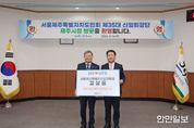 한민일보 서울포커스 김다남 기자 | 김상윤 제35대 서울제주특별자치도민회장은 16일 제주시청을 방문해 고향사랑기부금 500만 원을 기탁했다. 이날 기탁식은 김완근 제주시장과 서울제주특별자치도민회 회장단이 함께한 가운데 진행됐으며, 고향에 대한 따뜻한 마음과 애정을 나누는 뜻깊은 자리로 마련됐다. 김상윤 회장은 전 재경구좌읍민회장으로 활동했으며, 2025년 4월 27일 임기를 마친 뒤 올해 4월 1일 제35대 서울제주특별자치도민회장으로 취임했다. 김상윤 회장은 “제주인으로서 고향 발전에 힘을 보탤 수 있어 기쁘다”며, “앞으로도 멀리서나마 고향 제주를 위한 사랑을 적극 실천하겠다”고 말했다. 김완근 제주시장은 “고향에 대한 깊은 애정과 소중한 나눔에 진심으로 감사드린다”며, “앞으로도 지속적인 관심과 응원을 부탁드린다”고 화답했다.