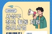 한민일보 서울포커스 임광현 기자 | 사상구는 다양한 아이디어와 열정을 지닌 청년들의 자율적인 활동을 지원하기 위해 ‘2026년 청년활동지원 공모사업’에 참여할 청년 모임 및 단체를 모집한다고 밝혔다. 이번 공모사업은 청년들의 창의적인 생각과 가치를 지역사회와 함께 실현하고 청년 스스로 성장할 수 있는 계기를 마련하기 위해 추진된다. 모집 대상은 공고일 기준 거주지 또는 생활권(학교·직장·사업장 등)이 사상구인 만 19세부터 39세까지의 청년 3인 이상으로 구성된 청년 모임 또는 단체이다. 최종 선정된 단체에는 팀당 300만 원 내외의 사업비가 지원되며, 총 3개 팀을 선발할 예정이다. 지원 분야는 사상구 청년공간 ‘사상청년브릿지’를 활용한 사업 1개 팀과 자율선정분야 2개 팀으로 나뉜다. 자율선정분야에는 ▲사회공헌·시설봉사 등 봉사활동 ▲청년 문화예술 활성화 및 버스킹 공연 등 문화예술 활동 ▲지역경제·지역관광 활성화 등 지역발전 관련 사업 등 다양한 청년활동이 포함되며, 구체적인 활동계획을 보유한 청년 모임 및 단체라면 자유롭게 신청할 수 있다. 선정은 서류심사와 면접심사를 통해 이루어지며, 활동