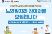한민일보 서울포커스 박용남 기자 | 광주광역시는 노인공익활동사업, 노인역량활용사업 등 ‘2026년 노인일자리 사업’ 참여자를 12월 1일부터 12일까지 모집한다. 광주시는 2026년 노인일자리사업에 1574억원의 예산을 투입해 3만6440명의 어르신에게 일자리를 제공하며, 5개 자치구와 5개 시니어클럽 등 72개 일자리 수행기관에서 다양한 사업을 추진한다. 모집인원은 사업유형별로 ▲노노케어 등 노인공익활동사업 2만6479명 ▲보육시설보조 등 노인역량활용사업 6038명 ▲매장운영 등 공동체사업단 2754명 ▲민간업체 취업지원(취업알선형) 사업 1169명이다. 모집대상은 광주시 거주 어르신으로, 노인공익활동사업은 65세 이상(일부 60세 이상) 기초연금수급자 등 기준을 충족한 어르신이다. 노인역량활용사업은 65세 이상(일부 60세 이상), 공동체사업단·취업지원(취업알선형)은 60세 이상 어르신이 신청할 수 있다. 단, 국민기초생활보장법의 생계급여 수급자, 국민건강보험 직장가입자, 장기요양보험 등급판정자(1~5등급), 다른 부처 일자리 사업 참여자 등은 모집 대상에서 제외된다. 신청은 신분증