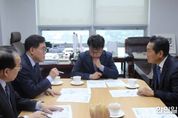 한민일보 서울포커스 전희주 기자 | 진교훈 서울 강서구청장이 13일 국회를 찾아 강서구민의 이동편의 증진을 위한 교통망 확충 사업에 대해 논의했다. 진 구청장은 이날 진성준 국회의원과 함께 국회에서 김용석 국토교통부 대도시권광역교통위원회(이하 대광위) 위원장을 만나 ▲5호선 차량기지 및 건설폐기물처리장(이하 건폐장) 전면 이전 ▲2호선 신정지선 연장 추진 시 신방화역 경유 ▲목동 경전철 마곡나루역 연장 등 총 3가지 지역 현안에 대해 적극 요청했다. 진 구청장은 소음과 분진, 대형 폐기물 차량 통행으로 인한 극심한 교통 혼잡 등 크고 작은 불편함을 수십 년간 감내해 온 강서구민의 피해상황을 적극 피력했다. 그러면서 5호선 차량기지 이전시 건폐장 뿐만 아니라 주변의 페기물 처리 업체까지 모두 이전해야 한다고 강조했다. 특히, 차량기지와 건폐장 부지가 이전하면서 발생하는 경제적 효과를 한국개발연구원(KDI)의 경제성 분석 과정에 반드시 반영해야 한다고 힘주어 말했다. 진 구청장은 2호선 신정지선 김포 연장 사업 추진 과정에서 외발산동 사거리를 거쳐 신방화역을 경유하는 방안 또한 적극 건의했