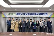 한민일보 서울포커스 김성혜 기자 | 인천광역시 계양구는 지난 17일 구청 영상회의실에서 ’계양구 학교폭력대책지역협의회‘를 개최했다고 밝혔다. 계양구 학교폭력대책지역협의회는'인천광역시 계양구 학교폭력예방 및 대책에 관한 조례'에 따라 학교폭력 예방 대책을 수립하고 기관별 상호 지원 방안을 협의하는 위원회로 위원장은 부구청장이며 총 13명의 위원이 참여하고 있다. 이번 회의에는 구 의회, 교육청, 경찰서, 보호관찰소 등 유관 기관 관계자들뿐만 아니라 녹색어머니연합회, 학교 운영위원회 소속 학부모까지 심의 위원으로 참석해 학교 폭력 예방과 해결을 위한 지역사회와 학부모의 상호 협력 속 다양한 의견을 교환했다. 위원장인 이동우 부구청장은 “이번 회의에서 논의된 다양한 의견들을 반영해 실효성 있는 학교폭력 예방 대책을 추진할 계획이며, 앞으로 청소년들이 더 안전한 환경에서 걱정 없이 성장할 수 있도록 노력하겠다.”라고 말했다. 한편, 구는 앞으로도 관계 기관과 협력을 강화하고 실질적 대응 체계를 구축해 학교폭력 이전부터 사후 회복까지 지역사회 중심의 통합 지원을 제공할 계획이다.