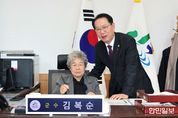 한민일보 서울포커스 김다남 기자 | 충북 괴산군은 18일 군수실에서 괴산두레학교가 운영 중인 ‘미디어 조각보’ 프로그램을 통해 어르신들과 함께하는 특별한 체험 활동을 진행했다. 이번 프로그램은 '내가 만일 다시 태어난다면?'이라는 주제로, 어르신들이 평소 마음속에 품어온 꿈을 실제로 경험해보는 체험형 평생학습 활동으로 마련됐다. 두레학교의 김복순 어르신(87세)은 “다시 태어난다면 군수가 되고 싶다”는 소망을 밝혔고, 군은 그 꿈을 응원하기 위해 어르신을 ‘일일 군수’로 특별 초청했다. 김복순씨는 송 군수와 함께 군수실을 둘러보고 간단한 군정 설명을 들으며 실제 공직자의 업무 환경을 체험했다. 김복순씨는 “배움의 기회를 다시 얻고, 이렇게 직접 경험까지 할 수 있어 큰 힘이 된다”며 감동의 소감을 전했다. 또 다른 체험자 양옥자 어르신(82세)은 “사단장이 되고 싶다”는 꿈을 밝혔으며 송 군수와 기념촬영과 티타임을 가지며 “평생 처음 가져보는 경험”이라며 기쁨을 전했다. 송 군수는 “오늘의 작은 체험이 어르신들께 새로운 자신감과 즐거운 기억이 되길 바란다”며 “어르신들이 활