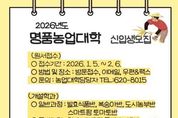 한민일보 서울포커스 박용남 기자 | 남원명품농업대학은 2026학년도 신입생 120명을 선발한다고 밝혔다. 이번 신입생 모집은 2026년 1월 5일부터 2월 6일까지 약 한달간 모집 예정이다. 일반과정 4개과 발효식품, 복숭아, 도시농부, 스마트팜 토마토반을 운영하며 학생들의 전문적인 교육을 위해 특별과정으로 청년 스마트팜 특별반 기초 과정과 심화 과정으로 분류하여 2개과를 전공별 모집 시스템을 전격 도입하여 전문성을 강화한 것이 특징이다. 올해 2026년 남원명품농업대학에서는 일반과정 4개과에서 각 25명씩, 특별과정 각 10명씩 모집하여 실습 중심 교육이 될 수 있도록 할 예정이며 특히 청년 스마트팜 특별반 모집에는 수준별 맞춤형 농업교육으로 남원의 우수한 청년 인재들이 농업의 경쟁력 강화와 지속 가능한 스마트 농업 분야에 진출할 수 있도록 교육에 중점을 둘 계획이다. 모집원서 접수는 각 읍면동 농민상담소나 남원시농업기술센터 농촌진흥과 인력육성팀접수 받고 있다.