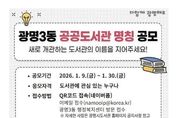 한민일보 서울포커스 임광현 기자 | 광명시가 광명3동 새 도서관의 이름을 지어줄 주인공을 찾는다. 시는 올해 10월 개관 예정인 ‘광명3동 공공도서관’ 명칭 공모를 9일부터 30일까지 22일간 진행한다고 9일 밝혔다. 광명3동 공공도서관은 광명3동 공공복합청사(광명동 104-9) 내 지상 5~6층에 연면적 1천600㎡ 규모로 조성ᅟᅡᆫ다. 어린이·종합 자료실을 비롯해 실감 놀이터, 어린이 창작공간, 강의실, 동아리실 등 전 세대가 함께 이용할 수 있는 복합문화공간으로 운영할 예정이다. 이번 명칭 공모는 도서관이 시민의 일상과 가장 가까운 생활 문화공간으로 자리 잡을 수 있도록, 공간의 성격과 가치를 잘 담아내면서도 모두에게 친숙한 이름을 찾기 위해 마련했다. 명칭의 적합성, 창의성, 대중성 등을 종합적으로 평가해 최우수상 1건(10만 원), 우수상 1건(7만 원), 장려상 1건(5만 원)을 선정하고, 온누리상품권으로 시상할 계획이다. 선정 결과는 오는 2월 중 광명시도서관 누리집에서 공개한다. 명칭 공모는 도서관에 관심 있는 누구나 참여할 수 있다. 온라인 양식을 작성해 제출하거나, 광