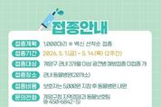 한민일보 서울포커스 김성혜 기자 | 인천광역시 계양구는 5월 1일부터 14일까지 지역 내 동물병원 20개소에서 반려견을 대상으로 ‘2026년 춘계 광견병 예방접종’을 실시한다고 밝혔다. 광견병은 감염된 동물에게 물렸을 때 사람에게도 전파될 수 있는 인수공통전염병으로, 가정에서 기르는 생후 3개월 이상의 개는 반드시 예방접종을 받아야 한다. 접종을 희망하는 주민은 백신이 조기에 소진될 수 있는 만큼, 동물병원 방문 전 전화로 잔여 수량을 확인해야 한다. 접종 시 보호자는 비용 5,000원을 부담하며, 방문 시 수의사와 충분한 상담을 거쳐 접종을 진행하는 것이 바람직하다. 구 관계자는 “광견병은 예방이 무엇보다 중요한 질병”이라며 “반려동물과 주민 모두의 안전을 위해 정해진 기간 내 예방접종에 적극 참여해 주시길 바란다.”라고 말했다. 기타 자세한 사항은 계양구청 지역경제과 동물보호팀으로 문의하면 된다.