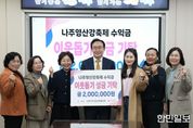 한민일보 서울포커스 임광현 기자 | 52만 명의 방문객이 다녀간 ‘2025 나주영산강축제’의 열기가 지역사회 나눔으로 이어지며 시민 참여형 축제가 따뜻한 상생의 결실로 확장되고 있다. 나주시여성단체협의회는 영산강축제 음식부스 운영 수익금으로 마련한 김장 김치 1천만 원 상당을 관내 취약계층에 전달하고 현금 200만 원을 나주시에 기탁했다고 2일 밝혔다. 이번 나눔은 축제 기간 시민과 관광객의 참여로 조성된 수익금을 지역사회에 환원하는 취지로 마련됐으며 여성단체 회원들이 정성을 모아 직접 준비한 김장 김치는 각 단체가 선정한 취약계층 가구에 전달했다. 기탁식은 지난달 30일 시청 소회의실에서 열렸으며 윤병태 나주시장과 김란 나주시여성단체협의회 회장을 비롯한 관계자들이 참석해 나눔의 의미를 함께 나눴다. 김장 김치는 겨울철 식생활에 어려움을 겪는 이웃들의 생활 안정에 도움을 줄 것으로 기대되며 함께 기탁된 현금 200만 원은 취약계층 지원을 위한 복지사업에 활용될 예정이다. 윤병태 나주시장은 “시민과 관광객의 참여로 마련된 축제 수익금을 다시 지역사회에 환원해 주신 나주시여성단체협의회에 감