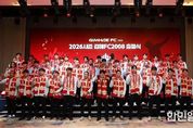 한민일보 서울포커스 최성훈 기자 | K리그2 진출을 앞둔 김해FC2008이 올 시즌 선전을 다짐하는 출정식을 성황리에 진행하며, 역사적인 첫 걸음을 이루었다. 22일 롯데호텔앤리조트 김해에서 열린 이번 출정식은 구단주인 홍태용 김해시장과 지역 정치계 인사, 한웅수 프로축구연맹 부총재를 비롯한 축구계 인사, 스포츠트라이브 황효진 대표이사 등 후원사 관계자, 서포터즈 구신과 축구팬 등 약 400여명이 참석한 가운데 김해FC의 도전을 한마음 한 뜻으로 함께 응원하고 축하하는 자리로 마무리 됐다. 관내 청소년 댄스팀의 축하공연으로 막을 올린 출정식에서는 참석한 내외빈의 축사, 손현준 감독의 출정사와 주장단의 결의문 낭독, 선수단 소개를 비롯해, 지난달 리뉴얼한 새 엠블럼을 화려한 비쥬얼의 3D 영상으로 구현하여 공개했고, 2026시즌 공식 유니폼 킷 4종을 선수들이 실제 착용하고 나와 팬들의 뜨거운 호응을 불러일으켰다. 또한 지난 K3리그 우승 상금으로 관내 유소년 축구팀과 아동시설에 후원 물품을 전달하는 등 훈훈한 사회공헌 활동도 함께 진행됐다. 행사 후반부에서는 팬들의 질문에 선수들이 직접 대답하는 Q