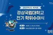 한민일보 서울포커스 박근원 기자 | 경상국립대학교는 2월 25일 오전 10시 가좌캠퍼스 GNU컨벤션센터에서 ‘2025학년도 전기(제76회) 학위수여식’을 열고 박사·석사·학사 학위 취득자들의 새로운 출발을 축하한다. 박사·석사학위 수여식은 GNU컨벤션센터에서 오전 10시에 개최하고, 학사학위 수여식은 단과대학별로 별도 계획에 따라 이날 개최한다. 경상국립대학교는 2월 20일부터 25일까지를 졸업주간으로 지정하고 가좌캠퍼스 도서관 앞 GNU레터링 조형물과 지누동상, 칠암캠퍼스 도란연못, 통영캠퍼스 해양생물교육연구센터 앞에 사진촬영구역(포토존)을 설치·운영한다(칠암·통영 캠퍼스는 2월 24~25일 이틀간 운영). 학위수여식 당일에는 가좌캠퍼스 학생회관 앞과 칠암캠퍼스 도서관 앞에 ‘인생 네 컷’ 기념촬영 부스도 별도 운영한다. 이날 학위수여식에서는 박사 106명, 석사 488명, 학사 2829명 등 3423명이 졸업한다. 이로써 경상국립대학교는 개교 이후 박사 4370명, 석사 2만 5065명, 학사 19만 8751명 등 모두 22만 8186명을 배출하게 된다(옛 경남과학기술대학교 졸업생 포함). &n