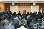 한민일보 서울포커스 박덕환 기자 | 김태흠 충남도지사가 병오년 새해 힘과 생명력을 상징하는 말의 기운을 받아 활력 넘치고, 에너지 가득한 한해를 만들어 갈 것을 다짐했다. 김 지사는 2일 도청 문예회관에서 열린 2026년 시무식에서 “그동안 역동적이고, 능동적으로 충남의 미래를 만들어 나가면서 많은 변화와 성과가 있었다”며 “이 모든 결과물은 여러분들이 힘써 이룬 자랑스러운 성과”라고 말했다. 이어 “제가 좋아하는 말 중에 유지경성(有志竟成)이라고, ‘뜻이 있으면 반드시 이룬다’는 말이 있다”며 “분명한 목표와 방향을 갖고 힘쎈충남답게 적극 노력한다면 우리가 원하는 성과를 이뤄낼 것이라 확신한다”고 강조했다. 끝으로 김 지사는 “올해는 민선8기를 완성하고, 그 성과를 다음 단계로 이어가는 중요한 해”라며 “저는 여러분들이 즐겁고 열정적으로 일할 수 있도록 도지사로서 맡은 바 소임을 다하겠다”고 재차 강조했다. 한편 이날 행사는 식전공연, 신년사, 떡케이크 커팅, 청렴공연 순으로 진행됐다.