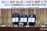 한민일보 서울포커스 곽중희 기자 | 강원특별자치도교육청은 원주시, 원주교육지원청과 11월 18일 원주시청에서 ‘원주 더나은교육지구 연장지정 업무협약’을 체결했다. 이번 협약은 2018년 제1기 4년, 2022년 제2기 4년 운영에 이어 2026년부터 4년간 제3기 더나은교육지구 사업을 새롭게 추진하기 위해 마련됐다. 세 기관은 ‘배움과 성장, 문화예술로 동행하는 원주’라는 비전 아래 학교와 지역이 함께 성장하는 지속가능한 교육생태계 조성을 위해 매년 4억 원(교육청 2억 원, 군 2억 원)을 공동 지원한다. 원주 더나은교육지구는 학생의 전인적 성장을 지원하는 지역 중심 교육협력 사업으로, 학교·지자체·지역사회가 협력하는 ‘배움과 성장의 지역교육공동체’를 구축하고 있다. 지구중점 공동사업으로 △‘원주 한바퀴’ 원주 탐방 프로젝트 △‘원주 한바탕’ 원주 체험 프로젝트를 운영해 학생들이 지역의 역사·문화·자연을 탐방하며 원주 시민으로서의 정체성과 자긍심을 기를 수 있도록 돕는다. ‘예술 피움’ 사업은 △‘꿈키움’ 찾아가는 문화예술 소공연 △‘꿈그림’ 그림책·영상 창작 프로젝트 △‘꿈도약’ 리더십 스포츠