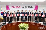 한민일보 서울포커스 임경복 기자 | 강릉시는 6일 시청 8층 시민사랑방에서 김홍규 강릉시장 주재로 「민선8기 성과공유회」를 개최했다. 이날 회의에는 김상영 부시장을 비롯한 국단소장이 참석하여 민선8기 출범 이후 현재까지 추진된 주요정책과 사업 추진 현황을 점검하고 향후 과제를 공유했다. 주요내용으로는 △ 분야별 주요업무 추진현황 점검 △ 향후 시정 운영 방향 공유 △ 공약 마무리 및 핵심현안사업 적기 추진 등 민선8기 주요 시정 전반이 포함됐다. 김홍규 강릉시장은 “민선8기 4년동안 추진해 온 주요 사업들이 차질 없이 추진될 수 있도록 노력한 공직자들의 노고에 감사드리고, 남은 기간 계획대로 마무리될 수 있도록 최선을 다해 달라”고 당부했다.