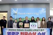 한민일보 서울포커스 박용남 기자 | 영광군은 12월 12일 전라남도가 주관하는‘2025년도 나무심기 평가’에서 최우수상을 수상했다. 2022년 최우수상, 2023년 대상, 2024년 최우수상에 이어 4년 연속 수상으로, 영광군의 지속적인 노력과 지역 주민들의 적극적인 참여가 결실을 맺은 결과다. 이번 평가는 전라남도 내 22개 시·군에서 추진한 산림 정책 전반을 대상으로 진행됐으며, 조성·관리·정책참여 등 총 3개 분야, 7개 항목에 대한 서류심사를 통해 우수 시군을 선정했다. 영광군은 3개 평가 분야에서 모두 높은 점수를 획득하며, 특히 식목일 행사를 비롯한 읍·면별 특색 있는 꽃동산 및 꽃길 조성, 산림 방문 후 SNS 인증을 통한 산림 가치 홍보 등의 활동에서 뛰어난 성과를 보였다. 이로 인해 나무심고 가꾸기 분위기 확산과 자발적인 도민 참여 확대가 이루어졌으며, 아름다운 전남 만들기에 기여한 점에서 우수한 평가를 받았다. 군 관계자는“4년 연속 우수기관으로 선정된 것은 기후위기와 탄소중립 시대에 산림의 중요성이 더욱 강조되는 가운데, 지역 주민들의 관심과 노력이 함께한 결과”라며