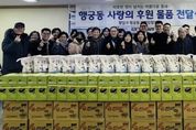 한민일보 서울포커스 진광성 기자 | 수원시 팔달구 행궁동은 지난 6일 설 명절을 맞아 ‘행궁동 사랑의 후원 물품 전달식’을 개최했다. 이번 전달식에는 설 명절을 앞두고 행궁동 취약계층을 위해 후원 물품을 기부한 행궁동 주민자치회를 비롯한 단체장들과 후원자들이 참석해 이웃 나눔의 의미를 함께 했다. 행궁동은 설 명절 이웃돕기를 위해 2월 5일까지 후원 물품을 접수한 결과 종교기관과 개인 후원자, 기업 등의 참여로 백미 10kg 200포와 라면 등 120박스를 후원받았다. 후원 물품은 관내 복지사각지대 및 저소득 가정에 전달될 예정이다. 전달식에 참석한 박영순 주민자치회장 등 행궁동 단체장들은 “명절마다 이어지는 나눔이 어려운 이웃에게 작은 위로가 되길 바란다”며 “앞으로도 지역사회 나눔 문화 확산에 적극 동참하겠다”고 전했다. 최영희 행궁동장은 “설 명절을 맞아 따뜻한 마음으로 후원에 동참해 주신 분들게 깊이 감사드린다”며, “지역의 소중한 복지자원과 이웃에 대한 관심이 촘촘한 복지행정을 실천하는 큰 힘이 되고 있으며, 후원해 주신 물품은 도움이 필요한 가정에 정성껏 전달하겠다”고 말했다.
