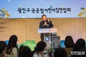 한민일보 서울포커스 임광현 기자 | 광진구는 12월 17일 구청 대강당에서 광진구 국공립어린이집연합회와 재단법인 초록우산이 주관한 ‘2025년 사랑의 동전 모으기·송년의 밤’을 개최했다. 61개 국공립어린이집이 한 해 동안 진행한 동전 모으기 나눔 활동을 마무리하고, 종사자들의 노고를 격려하기 위해 마련된 자리로, 보육 교직원과 아동 등 250여 명이 참석한 가운데 진행됐다. 백석대 김우주 교수의 뮤지컬 노래 공연으로 막을 올린 축하공연은 국공립어린이집 원장들로 구성된 ‘한마음하모니’와 자양어린이집 원아들이 함께한 합창으로 이어져 열띤 호응을 얻었다. 본행사에서는 노성희 회장의 인사말과 김경호 광진구청장의 격려사가 전해졌다. 또한, 초록우산 어린이재단 후원사업 소개와 베이비박스 캠페인 등 영상을 관람하며 따뜻한 나눔의 필요성을 함께 되돌아보는 시간을 가졌다. 이어 기부금 전달식이 실시됐다. 올해 모금액은 총 2천 7백만 원으로, 아이들과 학부모, 교직원들이 도움이 필요한 아이들을 위해 마음을 모았다. 성금은 재단법인 초록우산과 광진복지재단에 기탁돼 어린이들을 보호하고 건강한 성장을 돕는 아동복지 사