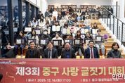 한민일보 서울포커스 김다남 기자 | 인천시 중구는 지난 16일 중구 평생학습관 3층 책뜰에서 ‘제3회 중구 사랑 글짓기 대회 시상식’을 개최했다. 올해로 3회를 맞는 ‘중구 사랑 글짓기 대회’는 학생들 스스로 발로 걸으며, 눈으로 본 중구의 역사, 문화, 자연을 아름다운 글로 표현함으로써, 애향심을 고취하고 인문학적 소양을 키울 수 있도록 돕는 데 목적을 둔 사업이다. 특히 인천시 교육청의 ‘읽·걷·쓰 캠페인’과 연계한 중구 교육혁신지구 특화 사업인 ‘중구마을 구석구석 탐방 사업’의 결실이기도 하다. 올해 대회에는 학생들의 맑은 시선으로 바라본 중구의 거리, 유구한 역사가 깃든 건축물, 바다 내음 가득한 풍경들을 다양한 형식의 글로 표현한 300여 점의 작품이 접수됐다. 치열한 심사 끝에 대상 4명, 최우수 8명, 우수 8명 등 총 20명(초등 부문 10명, 중등 부문 10명)의 입상자가 선정됐다. 시상식 말미에는 초등 부문 대상 입상자인 정은우 학생이 본인의 글짓기 작품인 ‘나의 중구 사랑 이야기’를 직접 낭독함으로써, 진정성 있는 울림을 통해 현장에 있던 관계자와 학부모들의 감탄을