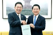 한민일보 서울포커스 박정민 기자 | 김영록 전남도지사는 19일 국회에서 김병기 더불어민주당 원내대표와 한병도 국회 예결위원장을 잇따라 만나 전남 핵심 현안의 필요성 설명하고 2026년 국비 증액 반영을 위해 적극적인 지원을 요청했다. 이날 국고 확보 활동은 2026년 예산심사와 주요 법률 논의가 본격화되는 시기에 전남의 미래가 걸린 핵심 사업을 반영하기 위해 전략적으로 이뤄졌다. 김영록 지사는 “지금이 전남의 미래 성장동력을 국가정책에 담아낼 골든타임”이라며 절박함을 전했다. 김병기 원대대표를 만난 자리에선 ▲세계적 인기를 누리는 김 산업을 체계적으로 육성하기 위한 ‘국립 김산업진흥원’ 설립 ▲전국 유일 의대 없는 전남의 의료공백 해소를 위한 통합대학교 국립의대 2027학년도 정원 배정 ▲재생에너지 기반 RE100산단과 배후도시를 조성하기 위한 ‘재생에너지자립도시 특별법’ 연내 제정 ▲여수 석유화학·광양 철강산업의 구조전환을 지원하기 위한 ‘석유화학·철강산업 특별법’ 제정 ▲전남이 에너지 대전환을 선도하기 위해 필요한 권한과 특례를 담은 ‘전남 에너지·해양 특화도시 특별법’ 제정 등을 건의했다. 김