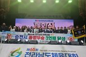 한민일보 서울포커스 최성훈 기자 | 순천시는 지난 10일부터 13일까지 4일간 구례군 일원에서 열린 제65회 전라남도체육대회에서 종합우승을 차지하며 3년 연속 종합우승의 쾌거를 달성했다. 전남 22개 시군 7,000여 명의 선수단이 참가한 이번 대회에 순천시는 23개 전 종목, 402명의 선수단이 참가해 그동안 갈고닦은 실력과 기량을 유감없이 발휘하며 종합 1위의 영예를 안았다. 종목별로는 배구, 소프트테니스, 족구, 바둑에서 1위를 축구, 복싱에서 2위를 골프, 농구, 검도, 씨름, 유도, 볼링에서 3위를 거두는 등 전 종목에서 고른 활약을 선보였다. 한편 대회 기간 중 8개 시·군 선수 및 관계자 3,000명 이상의 방문객이 지역 내에서 숙박과 식사, 주요 관광지를 방문하는 등 소비 활동을 한 것으로 분석된다. 이는 순천이 교통·숙박·먹거리 등 생활인프라가 잘 갖춰진 도시로, 경기 참가자뿐만 아니라 인근 지역 선수단의 추가 체류를 유도하며 소비 확대에 기여한 것으로 평가된다. 이에 따라 숙박·외식업 중심 직접 소비 및 연관 산업에 미치는 효과까지 총 경제유발효과는 약 23억 원 이상