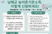 한민일보 서울포커스 김서윤 기자 | 남해군은 ‘농어촌 기본소득 시범사업’ 신청 접수를 오는 12월 30일부터 2026년 1월 30일까지 실시한다고 밝혔다. 농어촌 기본소득 시범사업은 남해군에 주민등록을 두고 실제 거주하는 군민을 대상으로 하며, 대상자로 확정될 경우 월 15만 원을 지역사랑상품권(카드형·선불카드)으로 지급하는 사업이다. 신청 대상은 신청일 기준 30일 이상 남해군에 주소를 두고 실제 거주 중인 주민으로, 군 복무자, 타 지역 대학생, 시설 입소자 등 실제 거주가 불분명한 경우는 제외된다. 신청은 주소지 관할 읍·면 행정복지센터 총무팀을 방문해 본인이 직접 신청해야 하며, 신분증을 반드시 지참해야 한다. 미성년자나 피후견인의 경우에는 법정대리인을 통한 대리 신청이 가능하며, 이 경우 대리인 신분증과 가족관계증명서 등 관계를 확인할 수 있는 서류를 제출해야 한다. 거주 시기에 따라 신청 요건도 달라진다. 2025년 10월 19일 이전부터 거주한 기존 주민은 최초 접수 기간 내 신청이 가능하며, 2025년 10월 20일 이후 전입한 신규 거주자는 전입일로부터 30일이 경과한 이후 신청할 수 있다. 신