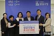 한민일보 서울포커스 진광성 기자 | 수원시 팔달구와 구 지역사회보장협의체는 지난 15일 구청장실에서 ‘팔달구 이웃사랑 바자회’ 성금 전달식을 가졌다. 지난 9월 23일 팔달구 지역사회보장협의체가 주관하고, 관내 10개 동 지역사회보장협의체 및 사회복지시설, 유관기관이 힘을 모아 추진한 ‘팔달구 이웃사랑 바자회’ 행사를 통해 전달된 성금은 총 252만 1천원으로, 해당 성금은 팔달구 취약계층을 지원하기 위한 구 특화 사업에 사용할 예정이다. 권남호 구 지역사회보장협의체 공동위원장은 “이웃의 어려움을 함께 나누기 위해 한마음으로 참여해주신 분들께 감사드린다”며, “이번 성금이 지역 내 어려운 이웃들에게 따뜻한 희망으로 전해지길 바란다”고 말했다. 이상균 팔달구청장은 “팔달구민의 자발적인 참여와 나눔이 지역사회를 더욱 따뜻하게 만든다”며, “앞으로도 민관이 함께하는 복지공동체 실현을 위해 적극 노력하겠다”고 밝혔다.