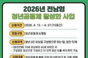 한민일보 서울포커스 박용남 기자 | 영광군은 청년들의 지역 활동 기반을 마련하고 지역사회 활동 주체로 성장할 수 있도록 지원하기 위해 오는 4월 27일까지 ‘2026년 전남형 청년공동체 활성화 사업’ 참여팀을 모집한다고 밝혔다. 이번 사업은 총 6개 팀을 선정해 팀별로 600만 원의 활동비를 지원하며, 발대식과 성과공유회, 네트워크 행사 등 다양한 교류 프로그램도 함께 운영될 예정이다. 신청 대상은 청년 5인 이상으로 구성된 팀·법인·단체이며, 모집 분야는 ▲지역연계 ▲일자리·창업 ▲문화·예술 ▲봉사활동 등 4개 분야다. 지역사회에 새로운 활력을 불어넣고 다양한 공동체 활동을 희망하는 청년이라면 누구나 참여할 수 있다. 참여를 희망하는 청년공동체는 영광군청 누리집에 게시된 공고문을 확인하여 관련 서류를 제출하면 되며, 자세한 사항은 영광군 인구교육정책실 청년지원팀으로 문의하면 된다. 영광군 관계자는 “지난해 전라남도 청년공동체 성과공유회 최우수상 수상을 통해 우리 군 청년들의 우수한 역량을 입증한 바 있다”며, “올해도 청년들의 창의적인 활동이 지역사회에 실질적인 변화와 활력을 가져올