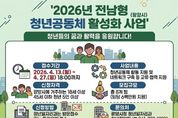 한민일보 서울포커스 임광현 기자 | 광양시는 4월 13일부터 4월 27일까지 ‘2026년 전남형 청년공동체 활성화 사업’에 참여할 청년공동체를 모집한다. 청년공동체 활성화 사업은 청년들이 공동체 활동에 참여하며 지역사회 활동 주체로 성장할 수 있도록 지원하는 사업이다. 심사를 통해 선정된 8개 팀에 팀별 최대 600만 원의 활동비가 지원된다. 신청 대상은 18세부터 45세까지의 청년 5인 이상으로 구성된 공동체로, 구성원의 60% 이상이 광양시에 거주해야 한다. 선정된 공동체는 6월부터 11월까지 지역 기반 활동을 추진한다. 지원 분야는 ▲관광 활성화 및 환경개선 등 지역 연계 프로그램 운영 ▲취업역량 강화 및 지역자원 활용 상품 개발 ▲공연·체험·축제 등 문화예술 프로그램 운영 ▲봉사활동 및 취약계층 지원 등 지역사회 공익 증진 활동 등이며, 모든 참여팀은 봉사활동 1회를 수행해야 한다. 시는 활동비 지원과 함께 청년공동체 출범식과 성과공유회 개최, 권역별 네트워크 행사 운영, 우수사례 홍보 등을 통해 청년들의 지역 활동 기반을 지원할 계획이다. 참여를 희망