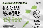 한민일보 서울포커스 임경복 기자 | ‘문장으로 그려낸 당신의 춘천은 과연?’ 춘천시가 올해부터 분기별로 ‘춘천 한 문장, 봄내글판’ 전국 공모전을 개최한다. '춘천 한 문장, 봄내글판'은 춘천시청사 외부 대형 전광판에 시민들이 공감할 수 있는 글귀를 게시해 용기와 희망을 전하는 감성 소통 창구다. 서울 광화문글판에서 영감을 받아 지난해 3월부터 운영되고 있으며 매월 새로운 문안을 선정해 시민들에게 선보이고 있다. 올해 1분기 공모 주제는 ‘내가 사랑하는 춘천’으로 춘천시민뿐 아니라 전 국민 누구나 참여할 수 있다. 형식 제한 없이 40자 이내의 창작 또는 인용 글이면 자유롭게 응모가 가능하다. 접수는 3월 24일까지 온라인(구글폼)과 우편을 통해 진행된다. 공모전 공고와 접수 링크는 춘천시 대표 홈페이지와 인스타그램 또는 페이스북 공식 SNS 채널에서 확인할 수 있다. 선정은 문예 관련 전문가·작가·언론인 등 5명으로 구성된 문안심사위원회가 맡는다. 지역성·심미성·전달성·참신성·대중성 등을 기준으로 심사해 최우수 1작, 우수 1작, 장려 2작, 입선 3작 등 총 7작을 선정한다. 시상금은 춘천사랑상품권으로 최