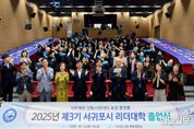 한민일보 서울포커스 김다남 기자 | 서귀포시는 10월 14일 서귀포시청 별관 2층 문화강좌실에서 '제3기 서귀포시 리더대학' 졸업식을 성황리에 개최했다. 이날 졸업식에는 김원칠 서귀포시 부시장, 제주특별자치도의회 의원, 제주평생교육장학진흥원장, 리더대학 졸업생 및 관계자 등 100여 명이 참석한 가운데 ▲축하공연 ▲학사보고 ▲수료증 및 표창 수여 ▲인사말씀 및 축사 ▲기념촬영 순으로 진행됐다. 서귀포시 리더대학은 기존 시민대학, 리더대학, 여성대학을 2024년부터 통합하여 시민공개강좌·주민자치학과·양성평등학과 체제로 운영되고 있는 시민 리더 양성과 자치역량 강화 중심의 평생학습 플랫폼이다. 올해 제3기 과정은 지난 4월 8일 입학식을 시작으로 약 6개월간 총 20강좌·40시간으로 운영됐으며, 재학생 99명 중 88명이 수료해 수료율은 88.9%로 전년도(75.7%)에 비해 13.2% 높아졌다. 이는 참여·소통형 수업과 현장학습을 강화, 학과 간 통합교육(4회) 등 참여자 교류와 몰입도를 높인 결과로 해석된다. 또한 건강과 인공지능을 주제로 2회 진행된 시민공개강좌의 평균 만족도 또한 9