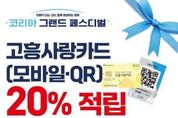 한민일보 서울포커스 임광현 기자 | 고흥군은 전국 대규모 할인 축제인 ‘코리아 그랜드 페스티벌’을 기념해 10월 29일부터 11월 9일까지 12일간 모바일 고흥사랑상품권 20% 적립 이벤트를 진행한다고 밝혔다. ‘코리아 그랜드 페스티벌’은 내수 회복을 위해 정부 10개 부처 합동 주관으로 유통업계와 소상공인 등 3만여 업체가 참여하는 국가 단위 대규모 소비축제로, 10월 29일부터 11월 9일까지 12일간 진행된다. 고흥군은 전국적으로 진행되는 코리아 그랜드 페스티벌에 발맞춰 지역 소비 및 상권 활성화를 위해 모바일 고흥사랑상품권 적립률을 5% 상향해 총 20% 특별 적립 이벤트를 마련했다. 행사 기간 모바일 고흥사랑상품권을 결제하면 결제금액의 20%를 적립할 수 있으며, 적립된 캐쉬백은 가맹점에서 일반 상품권과 동일하게 사용할 수 있다. 모바일 고흥사랑상품권은 ‘지역상품권 chak’ 앱을 통해 충전하며, 고흥사랑카드 또는 chak 어플 QR코드를 이용해 가맹점에서 사용할 수 있다. 군은 이번 20% 특별 적립 이벤트가 11월 6일부터 9일까지 4일간 진행되는 제5회 고흥유자축제의 성공