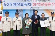 한민일보 서울포커스 백진욱 기자 | 연수구는 지난 21일 6·25전쟁에 참전해 공을 세운 故이장호 중사 유가족에게 화랑무공훈장과 증서를 전달했다. 故이장호 중사는 6·25전쟁 당시 무공수훈자로 결정됐음에도 전쟁 상황의 긴박함과 전후 혼란함으로 무공훈장을 받지 못했지만, 최근 국방부와 지자체가 협업하는 ‘6·25 무공훈장 찾아주기’ 사업을 통해 훈장을 전달받았다. 이날 6.25 참전유공자회 연수구지회 김명하 회장, 조영림 부회장 등이 참석한 가운데 수여식이 진행됐으며, 故이장호 중사의 아들 이한신 씨는 6·25전쟁 전쟁 때 헌신하신 아버지를 대신해 훈장을 받게 돼 대단히 영광스럽다며, 명예로운 자리에 참석해 주신 모든 관계자분께 감사의 말씀을 전했다. 이재호 연수구청장은 “6.25 참전 유공자분들이 계셨기에 오늘의 자유와 평화로운 대한민국이 있다.”라며 “나라를 수호한 참전유공자의 숭고한 애국정신을 잊지 않고 앞으로도 더 합당한 예우와 지원을 위해 최선을 다하겠다.”라고 말했다.