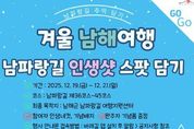 한민일보 서울포커스 김서윤 기자 | 아름다운 쪽빛 바다가 펼쳐진 남해의 겨울을 온전히 느낄 수 있는 특별한 걷기 행사가 오는 12월 19일부터 21일까지 3일간 남파랑길 코스 및 남파랑여행지원센터에서 열린다. 남해군 관광진흥과는 코리아둘레길 중 남해 구간에 해당하는 ‘남파랑길’의 매력을 알리고, 연말을 맞아 남해를 찾은 가족, 연인, 친구 단위 관광객들에게 잊지 못할 추억을 선사하기 위해 이번 행사를 기획했다. 행사 코스는 남해의 비경을 간직한 남파랑길 제36코스부터 제45코스까지다. 참여를 원하는 관광객은 스마트폰에 ‘남해바래길’ 앱을 설치한 뒤 원하는 코스를 선택하고, ‘따라가기’ 기능을 활성화하여 걸으면 된다. 참가자들은 각 코스를 걸은 후 최종 목적지인 남파랑길여행지원센터(이동면 성남로 97)에 도착하여 걷기 기록을 인증하면 다양한 혜택을 받을 수 있다. 남해군은 참여 열기를 높이기 위해 풍성한 기념품을 마련했다. 단순 걷기 참여자(선착순 200명)에게는 기념 배지를, 5km 이상 구간을 걸은 참여자(선착순 100명)에게는 소정의 기념품을 증정한다. 특