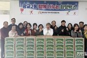 한민일보 서울포커스 진광성 기자 | 광교2동 지역사회보장협의체는 지난 12월 1일부터 15일까지 2주간 관내 독거노인을 위한 생활용품 등 선물 150박스를 완성한 후, 18일 박남숙 광교2동장과 이종금 지역사회보장협의체 위원장 및 위원들은 '함께 나누는 희망박스'전달식을 가졌다. 12월 따뜻한 이웃돕기로 광교2동 지역사회보장협의체가 주관하여 지역사회보장협의체 위원들이 소속된 기관에서 각각 햇반, 라면, 간식, 쌀 등 생필품을 모집했다. 광교2동 행정복지센터 내에도 '함께 나누는 희망박스' 트리를 설치하여 광교2동 주민자치회, 통장협의회 등 각 단체장 및 단체원, 어린이집 학부모 등 지역주민 모두가 동참한 연말 이웃돕기 '함께 나누는 희망박스'150개를 완성했다. 이종금 광교2동 지역사회보장협의체 위원장은 “연말 '희망박스'와 함께하는 이웃돕기에 동참해주셔서 감사드리고, 한집 한집 방문하여 소중한 마음이 전달될 수 있도록 노력하겠다”고 말했다. 또한, 박남숙 광교2동장은 “광교2동의 어려운 이웃을 위하여 좋은 취지로 함께한 '희망박스'로 따뜻한 마음을 나눠주신 것에 대해 진심으로 감사드린다”고 말했다. &nbs