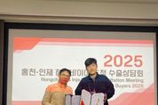 한민일보 서울포커스 진광성 기자 | 홍천군은 관내 중소기업의 수출 판로 확대를 위해 12월 16일 소노캄 비발디파크에서 ‘해외 바이어 초청 수출상담회’를 개최했다. 이번 상담회는 기존 수출 시장을 넘어 홍콩과 중화권 바이어를 초청해 신규 해외 판로를 개척하고, 실질적인 수출 계약 성과를 창출하기 위해 마련됐다. 수출상담회에는 관내 농가공품 우수 수출기업 12개사와 인제군 기업 9개사가 참가했으며, 해외 바이어는 홍콩과 대만 등 중화권 바이어 10개사가 참여했다. 상담회에서는 약도라지청과 오미자청, 산양산삼, 홍삼스틱, 돌배즙 등 건강기능식품을 비롯해 수제강정과 건조칩, 간편식 칼국수 등 스낵과 간편식 제품까지 홍천 지역의 청정 자연과 전통 가공 방식을 살린 다양한 우수 제품이 선보였다. 또한 제품 소개와 시연, 기업과 바이어 간 1대1 맞춤형 수출 상담을 통해 실질적인 수출 계약과 현지 유통망 입점 협상이 진행됐다. 그 결과, 농업회사법인 백이동골 주식회사(대표 오석조)는 간편식 강된장 제품으로 2만 5천 달러 규모의 수출 업무협약(MOU)을 체결했으며, 기리네(대표 윤재길)는 표고칩과 건조칩 제품으로 30만 달러 규모의 수출 업무협약(MOU)을 체결하는 성