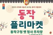 한민일보 서울포커스 곽중희 기자 | 동작구가 오는 11월 1일 오전 10시부터 오후 5시까지 구청 옛 청사 주차장(노량진역 5번 출구)에서 ‘2025 추억과 나눔이 오가는 동작 가을장터’를 연다고 밝혔다. 이번 행사는 주민과 단체가 직접 참여하는 ‘플리마켓’과 김장철 맞이 ‘직거래장터’를 한자리에서 즐길 수 있도록 기획됐다. 먼저 플리마켓은 약 30개 부스에서 의류, 도서, 소품 등 다양한 중고 물품을 판매하며 일상 속 자원순환 문화를 실천하는 장으로 마련된다. 직거래장터에서는 자매결연 도시 등에서 들여온 김장철 필수 품목(배추, 무, 고춧가루 등)과 지역특산물이 시중가보다 최대 33% 저렴하게 판매된다. ▲축산물 타임세일(11시·13시·15시) ▲선착순 증정품 지급 ▲당일 배달서비스(박스 단위, 관내 한정) ▲칼갈이 부스(인당 2개, 개당 100원) 등 다양한 이벤트도 진행된다. 아울러 주민들이 즐길 수 있는 ‘체험 프로그램(한지 무드등·편백 향낭 만들기 등)’과 구청 직원이 참여하는 ‘사랑 나눔 바자회’도 운영된다. 바자회 수익금은 동작복지재단 등에 후원금으로 활용될 예정이다. 이와