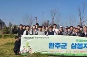 한민일보 서울포커스 박용남 기자 | 완주군 봉동읍에 위치한 한솔케미칼 전주공장과 LH삼봉사회복지관이 제81회 식목일을 맞아 완주군 삼봉지구 감돌숲공원에서 ‘수국 정원 조성 행사’를 열고 지역사회를 위한 환경 가꾸기에 나섰다. 최근 열린 행사는 완주군 산림녹지과와의 협력을 통해 추진했으며, 지역 주민들에게 자연 친화적인 생활환경의 가치를 알리고 지속 가능한 환경 보호 실천을 확산하고자 마련했다. 특히 한솔케미칼 전주공장이 후원한 약 400만 원 상당의 수국나무 500주는 임직원들이 직접 참여한 자원봉사 활동을 통해 식재되어 그 의미를 더했다. 완주군 삼봉지구 감돌숲공원에 뿌리 내린 수국나무는 여름철 화려한 꽃을 통해 공원의 경관을 한층 풍성하게 만들고, 주민들에게 쾌적한 휴식 공간을 제공할 것으로 기대를 모으고 있다. 김용두 한솔케미칼 공장장은 “기업의 사회적 책임을 실천하는 환경·사회·투명 경영(ESG 경영)의 일환으로 이번 활동을 추진하게 됐다”며 “삼봉지구 주민들이 이용하는 공원에 수국정원이 조성되어 지역에 활력을 더하길 기대한다”고 밝혔다. 임평화 LH삼봉사회복관장은 “지역사회와