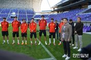 한민일보 서울포커스 최성훈 기자 | 김진태 강원특별자치도지사(구단주)는 11월 3일 오후 3시, 일본 히로시마 에디온 피스 윙 스타디움을 방문해 아시아챔피언스리그 조별리그 원정경기를 앞두고 훈련 중인 강원FC 선수단을 격려하고 응원의 메시지를 전했다. 이날 선수들이 훈련 중인 에디온 피스 윙 스타디움은 내일(4일) 경기가 열릴 장소로, 구단주인 김진태 지사는 시합 하루 전 경기장을 찾아 라커룸, 웜업존, 원정응원석 등을 둘러보며 부족한 점이 없는지 점검하고 선수단 지원에 부족함이 없도록 만전을 다할 것을 당부했다. 정경호 감독은 “선수 모두가 ‘강원’의 이름을 가슴에 새기고 경기에 임하고 있다”며, “도민과 팬들의 기대와 응원에 보답할 수 있도록 최선을 다하겠다”고 감사의 뜻을 전했다. 김시성 도의장은 “내일 경기에 500명이 넘는 응원단이 원정석을 가득 메워 목이 터져라 응원할 예정”이라며, “열심히 응원할 테니 기죽지 마시고 파이팅해 달라”고 말했다. 구단주인 김진태 지사는 “일본에서 우리 선수들을 만나니 감개무량하다”며, “긴장하지 말고 대한민국 강원FC라는 긍지를 가지고 평소처럼 실력을 발