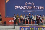 한민일보 서울포커스 김은금 기자 | 경상북도는 22일 영주시 풍기인삼문화팝업공원에서 민족통일협의회 경상북도 주관으로 ‘2025 민족통일 경상북도대회’를 개최했다. 행사에는 김진현 경북도 안전행정실장, 배진석 도의회 부의장, 유정근 영주시장권한대행, 도재영 민족통일 중앙협의회 의장, 박종호 민족통일경상북도협의회장, 김추길 민족통일 전남회장을 비롯한 시군지회 회원 700여 명과 풍기인삼축제현장을 찾은 많은 관광객과 어울려 뜻깊은 행사를 했다. 행사는 식전 공연을 시작으로, 한반도 평화를 위한 결의문을 회원들과 함께 낭독하고, 이어서 지역사회 및 통일 안보에 이바지한 우수 유공자들에게 도지사 표창을 비롯한 다양한 상패가 수여되며 행사 분위기를 한층 고조시켰다. 특히, 행사 마지막에는 참가자 전원이 함께 ‘우리의 소원은 통일’을 합창하며, 평화통일의 필요성과 중요성을 다시 한번 되새기는 뜻깊은 시간으로 마무리됐다. 박종호 민족통일 경상북도협의회장은 대회사를 통해 “확고한 국가관과 투철한 사명감을 바탕으로 민족의 염원인 조국의 평화통일을 실현할 수 있도록 도민들의 적극적인 참여와 성원”을 당부했다. &nbs