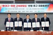 한민일보 서울포커스 김서윤 기자 | 창원특례시는 30일 국회의원회관에서 ‘동대구–창원–가덕도신공항 고속화철도’의 제5차 국가철도망 구축계획 반영을 위해 추진 중인 범시민 서명운동(10.17.~11.16.)과 연계해, 사업 추진에 대한 공감대 확산을 위해 ‘동대구–창원 고속화철도 반영 촉구 국회토론회’를 개최했다. 이번 토론회는 윤한홍, 최형두, 김종양, 이종욱, 허성무 국회의원이 공동으로 주최하고 창원특례시가 주관해 ‘동대구-창원-가덕도신공항 고속화철도’의 필요성을 적극 알리고, 사업의 신속한 추진을 촉구하는 창원특례시민의 염원을 하나로 모으기 위해 마련됐다. 창원특례시 국회의원 5명은 “대한민국의 지속가능한 발전은 수도권과 비수도권이 균형 있게 성장하는 데서 시작된다”라며, ‘동대구–창원 고속화철도’가 그 목표를 달성하기 위한 핵심 사업임을 강조했다. 이어, “제5차 국가철도망 구축계획에 이 사업을 반드시 반영하고 조속히 추진할 것”을 한목소리로 강력히 촉구했다. 이날 행사에서는 ‘동대구-창원 고속화철도 반영 촉구 서명식’과 조속한 사업 추진을 염원하는 ‘피켓 세리머니’가 함께 진행되어, 참석자