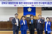 한민일보 서울포커스 국용호 기자 | 강북구의회 의원연구단체인 ‘강북형 교육발전지원 연구회’ (대표의원 허광행)는 지난 10월 15일 의회 3층 의원회의실에서 중간보고회를 열었다. ‘강북형 교육발전지원 연구회’는 허광행 대표의원을 비롯해 최인준, 곽인혜, 심재억, 최치효 의원 등 5명의 의원으로 구성되어 있으며, 강북구의 교육 현황을 면밀하게 분석하고 지역 실정에 맞는 교육지원 과제를 도출하기 위해 지난 7월부터 활동한 연구 활동을 이어오고 있다. 이날 보고회에서는 연구용역 수행기관인 나라살림연구소 책임연구원이 연구의 추진 경과와 주요 분석 결과를 발표했다. 특히 강북구의 교육환경과 서울시 자치구별 교육정책 비교, 학부모 대상 설문조사 결과 등이 공유됐으며, 참석 의원들은 이를 바탕으로 강북구 교육의 현황과 향후 발전 방향에 대해 폭넓게 의견을 나눴다. 허광행 대표의원은 “아이들이 지역 안에서 폭넓은 교육 경험을 쌓을 수 있도록 지원 방안을 모색하고, 다양한 교육환경이 조성될 수 있도록 노력하겠다”고 말했다. 강북구의회의 다양한 소식은 의회 홈페이지에서 확인이 가능하다.