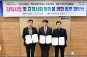 한민일보 서울포커스 진광성 기자 | 수원특례시 영통구는 지난 18일, 한국지역난방공사 수원지사, 구 주민자치협의회와 상호 협력을 바탕으로 지역 미래인재 육성을 위한 장학사업 협약을 체결했다. 이번 협약은 지역 내 학업 의지가 높으며 경제적 지원이 필요한 학생들을 지원하고, 주민과 기관이 함께 성장하는 지역 공동체의 기반을 마련하기 위해 추진됐다. 한편 한국지역난방공사는 내년도 장학사업이 보다 내실 있게 추진될 수 있도록 협약 체결과 함께 장학금 500만 원을 기탁했다. 해당 장학금은 사회복지공동모금회를 통해 관내 학생 가운데 도움이 필요한 대상자를 절차에 따라 선정한 뒤 전달될 예정이다. 한국지역난방공사 김진만 수원지사장은 “지역과 상생하는 공기업으로서 사회적 책임을 꾸준히 실천하고자 한다”며 “이번 장학금이 학생들의 학업과 미래 설계에 작은 힘이 되기를 바란다”고 말했다. 또한 장대현 구 주민자치협의회 회장은 “주민이 중심이 되어 지역 인재를 응원하고 지역 빌전에 기여할 수 있어 뜻깊다”며 “앞으로도 책임감을 가지고 장학사업 및 다양한 협력 사업을 성실히 수행하겠다”고 전했다. 장수석
