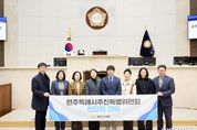 한민일보 서울포커스 김성윤 기자 | 용인특례시의회는 30일 의장실에서 원주시의회 원주특례시추진특별위원회의 방문을 받고 특례시 추진 및 운영 사례를 공유하는 시간을 가졌다고 밝혔다. 이번 방문은 특례시 추진을 준비 중인 원주시의회가 용인특례시의회의 제도 운영 경험과 의회 조직·권한 구조를 벤치마킹하기 위해 마련됐다. 용인특례시의회에서는 유진선 의장을 비롯해 이윤미 의회운영위원장, 김희영·이진규·기주옥 의원이 참석했으며, 용인특례시 자치분권과 관계자들도 함께했다. 원주시의회 원주특례시추진특별위원회에서는 손준기 위원장과 최미옥·문정환 의원 등 관계자들이 참석했다. 이날 일정은 상호 소개를 시작으로 ▲특례시 운영 현황 및 제도적 기반에 대한 설명 ▲특례시 추진 과정과 의회 역할 공유 ▲의회 시설 견학 순으로 진행됐다. 특히, 참석자들은 ‘지방자치법’과 ‘지방자치분권 및 지역균형발전에 관한 특별법’ 등 특례시 관련 법령 체계, 인구 100만 이상 대도시의 행·재정 수요 증가에 따른 특례시 도입 배경과 필요성, ‘특례시의회 사무기구 구성과 정책지원 전문인력 운영 사례 등에 대해 심도 있는 의견을 나눴다. &n