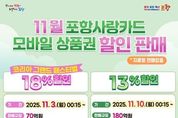 한민일보 서울포커스 임철현 기자 | 포항시는 코리아 그랜드 페스티벌 기간 지역 내 소비 붐업을 위해 내달 3일부터 카드형·모바일 포항사랑상품권을 70억 원 규모로 18% 할인판매를 시작한다. 코리아 그랜드 페스티벌은 이달 29일부터 내달 9일까지 12일간 개최되는 국가 차원의 통합 할인 행사로 제조·유통과 전통시장, 소상공인 업계가 참여한다. 이번 포항사랑카드 특별할인 판매는 기존 할인 혜택 13%에 5%를 추가해 총 18% 할인 혜택이 적용되며, 국비를 추가 확보해 코리아 그랜드 페스티벌과 연계로 진행하는 행사로 지역 내 소비 활성화에 기여할 것으로 기대하고 있다. 또한 시는 내달 3일부터 시작하는 포항사랑카드 70억 원 규모의 18% 할인판매에 이어 내달 10일부터는 180억 원 규모로 13% 할인판매 등 11월에 총 250억 원을 발행해 실질적인 소비 촉진으로 지역 상권 회복과 지역경제 선순환을 이어가겠다는 방침이다. 이번 포항사랑카드 18% 특별 할인판매의 개인 구매 한도는 10만 원이며, 보유 한도는 100만 원이다. 오는 11월 3일 0시 15분부터 모바일 앱(iM샵)에서 충전할 수 있으