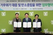 한민일보 서울포커스 김다남 기자 | 충북 진천군은 25일 청주충북환경운동연합 사무실에서 ‘2050 탄소중립 및 지역에너지 전환 실현을 위한 상생협력 협약’을 체결했다. 이번 협약은 기후 위기 심화와 제도 환경 변화 속에서 지방정부의 탄소중립 역할 강화에 선제적으로 대응하고자 추진됐다. 충북 최초의 민·관 협력 체계를 공식 구축하면서 양 기관은 기후위기 대응과 에너지 전환을 공동 추진하기로 했다. 협약의 주요 내용은 △지역 맞춤형 탄소중립 기반 구축 △ESG 실천문화 확산과 군민 참여 확대 △신재생에너지 보급 활성화를 위한 지역 거버넌스 운영 등이며, 양 기관은 각 분야에서 지속적이고 실질적인 협력을 추진하기로 합의했다. 이은천 군 경제과장은 “기후위기 대응은 행정의 노력만으로는 한계가 있으며, 시민사회의 전문성과 참여가 결합할 때 비로소 실질적 변화를 이끌 수 있다”며 “이번 협약을 기반으로 진천군이 기후정책과 지역경제 혁신을 동시에 실현하는 기후경제 선도도시로 도약할 것”이라고 강조했다. 한편 군은 그동안 신재생에너지 보급 확대, 에코머니 제도 운영, 환경교육, 탄소중립 실천운동 전개