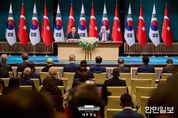 한민일보 서울포커스 김윤이 기자 | 튀르키예를 국빈 방문한 이재명 대통령은 24일(현지시간) 앙카라 대통령궁에서 레제프 타이이프 에르도안 대통령과 양자회담을 통해 방산, 원자력, 바이오, 인프라, 인적·문화 분야 등에서 협력을 강화해 나가자는 데 뜻을 모았다. 양국 정상은 또 이러한 포괄적 협력을 원활히 추진하기 위한 '대한민국과 튀르키예공화국 간 전략적 동반자 관계에 관한 공동성명'을 채택했다. 이 대통령과 에르도안 대통령은 이날 단독회담에 이어 확대회담, 양해각서(MOU) 서명식을 순차적으로 가진 뒤 이 같은 내용을 담은 공동언론발표를 진행했다. 대한민국 대통령으로는 13년 만에 튀르키예를 국빈 방문한 이 대통령은 국부(國父)로 불리는 무스타파 케말 아타튀르크 영묘 헌화식과 대통령궁에서 열린 공식환영식에 참석한 후 에르도안 대통령과 1시간 43분에 걸쳐 정상회담을 했다. 이 대통령은 공동언론발표를 통해 "튀르키예의 한국전쟁 참전 75주년이자 저의 대통령 취임 첫해인 올해 '형제의 나라' 튀르키예를 방문하게 되어 매우 뜻깊게 생각한다"며 "양국은 2012년 '전략적 동반자 관계'를 체결하고 정무, 경제, 문화, 인적 교류 등 제반 분야에서 호혜적인 협력을