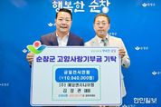 한민일보 서울포커스 김용택 기자 | 순창군은 10일 (주)예담엔지니어링 김장관 대표가 고향사랑기부금 1,004만원을 기탁하며 순창에 대한 각별한 애정을 전했다고 밝혔다. 태양광 및 신재생에너지 분야에서 전문성을 인정받는 (주)예담엔지니어링을 운영하고 있는 김장관 대표는 평소에도 지역사회 상생과 나눔에 관심을 가지고 실천해 온 것으로 알려져 있다. 지난 2024년에 순창군의 사회복지시설에 2천 500만원 상당의 태양광발전 설비를 기증했고, 올해는 천사(1004)의 마음으로 순창군 발전을 응원하겠다는 뜻을 담아 고향사랑기부금 1,004만원을 기탁해 그 진정성을 더했다. 김장관 대표는 “순창군과 맺은 인연을 소중히 여기며, 군 발전을 응원하는 마음을 담아 기부에 동참하게 됐다”며, “앞으로도 지속적인 나눔을 통해 순창군과 동행하겠다”고 소감을 전했다. 군 관계자는 “순창군을 응원하는 따뜻한 마음으로 나눔의 가치를 몸소 실천해 주신 김장관 대표께 깊은 감사를 드린다”며, “보내주신 기부금은 군민 복리 증진과 지역발전을 위해 소중히 사용하겠다”고 화답했다.