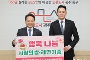 한민일보 서울포커스 임경복 기자 | 광주 동구는 광주무등청년회의소가 지난 9일 지역 내 취약계층의 따뜻한 겨울나기 지원을 위해 백미와 라면을 후원했다고 밝혔다. 이번 전달식은 지역사회 나눔 문화를 확산하기 위한 것으로, 백미 10㎏ 30포와 라면 30박스 등 총 150만 원 상당의 물품이 기부됐다. 후원 물품은 겨울철 한파로 어려움을 겪는 쪽방촌 주민들의 식사 지원에 활용될 예정이다. 백미는 들랑날랑 커뮤니티센터에서 쪽방촌 주민을 위한 무료 점심 식사 제공에 사용되며, 라면은 쪽방촌 공유부엌에 비치해 주민들이 언제든지 간편한 식사와 간식을 자율적으로 이용할 수 있도록 할 계획이다. 김창범 회장은 “지역사회와 함께 성장해 온 청년단체로서 쪽방촌 주민들을 위한 식사 지원에 동참하게 되어 매우 뜻깊게 생각한다”면서 “앞으로도 지역사회에 도움이 되는 나눔 활동을 지속적으로 이어가겠다”고 말했다. 동구 관계자는 “연일 이어지는 한파 속에서 이웃의 일상을 지켜주는 따뜻한 나눔을 실천해 주신 광주무등청년회의소에 깊이 감사드린다”면서 “사람을 먼저 생각하는 인문도시 동구의 가치가 이번 나눔을 통해 현