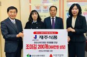 한민일보 서울포커스 황준형 기자 | (재)천안시복지재단은 5일 재주식품이 취약계층을 위한 360만 원 상당의 별난맛김 200개를 후원했다고 밝혔다. 별난맛김은 복지기관과 취약계층 가구에 전달될 예정이다. 한창열 재주식품 대표는 “작은 나눔이지만 지역의 어려운 이웃에게 따뜻한 힘이 되길 바라는 마음으로 후원에 동참했다”며 “앞으로도 지역사회와 함께 성장하는 기업이 될 것”이라고 말했다. 이운형 천안시복지재단 이사장은 “생필품과 식품 후원은 취약계층에게 가장 실질적인 도움이 된다”며 “나눔에 동참해주신 재주식품에 감사드리며, 다양한 기업과 함께 촘촘한 복지안전망을 만들기 위해 노력할 것”이라고 말했다.